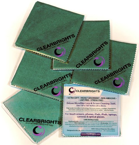 - Title : Professional Grade Lens, Screen & Eyeglass Microfiber Cleaning Cloth. Lint Free. ClearBrights cloths clean: camera-lenses-eye glasses-iPad-laptop-tablet-phone-screens. Keep Yours Cleaner! 6 Pack.