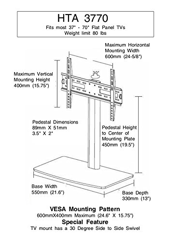 -. Title : Universal Replacement TV Stand / Base With Swivel Feature fits most 37"-70" TVs Flat Panels, LCD, LED