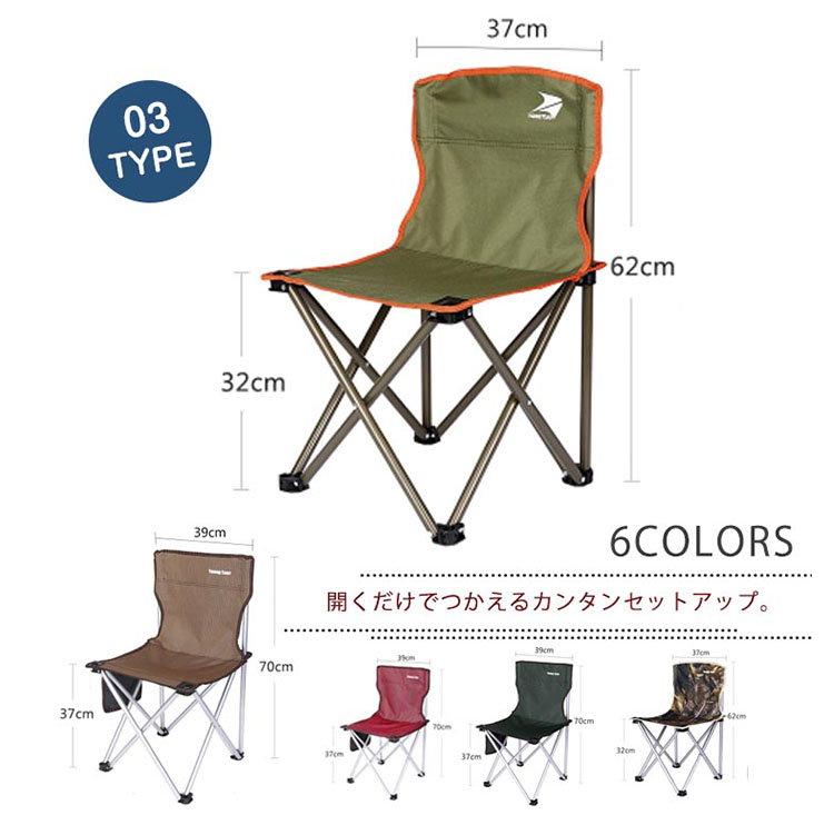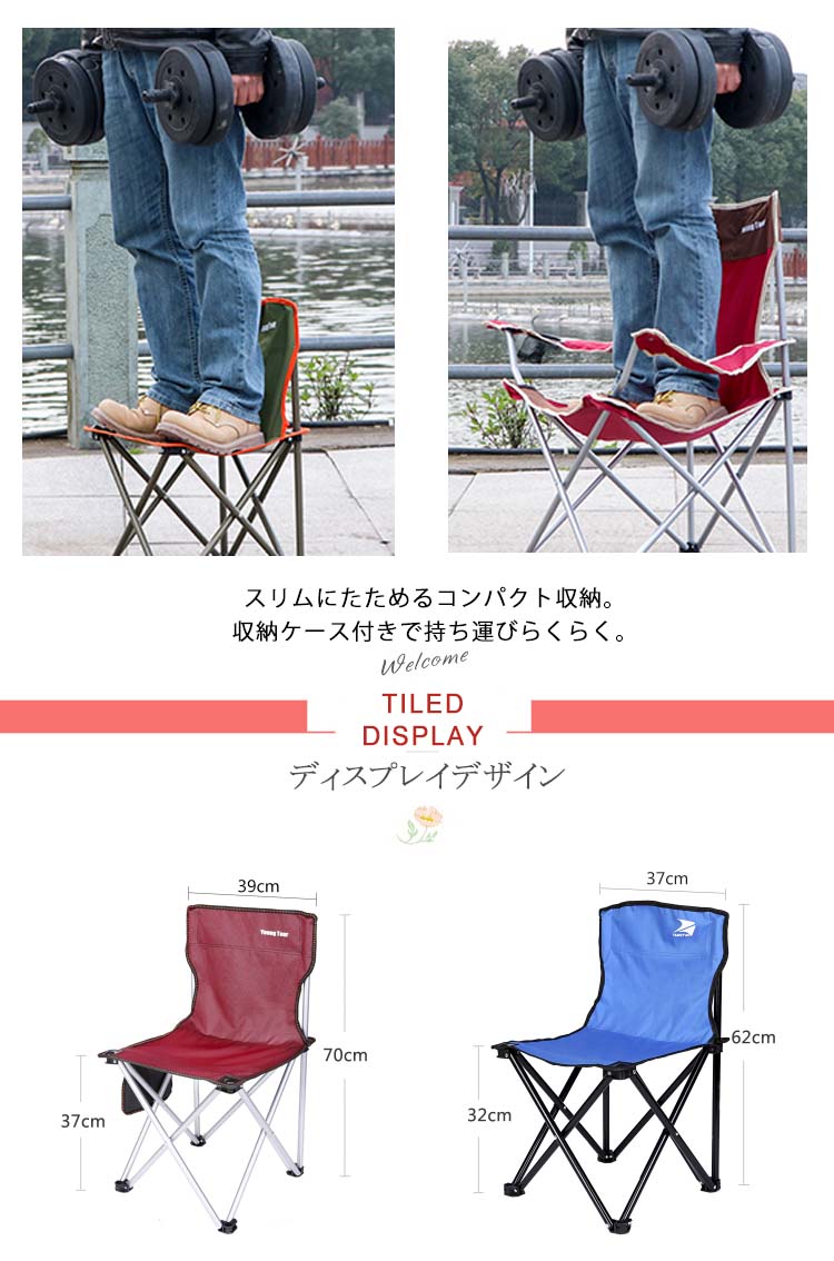 | 開くだけでつかえるカンタンセットアップ。ゆったり座れ、運動会、スポーツ観戦、キャンプ、イベントに重宝します。スリムにたためるコンパクト収納。収納ケース付きで持ち運びらくらく。 | |