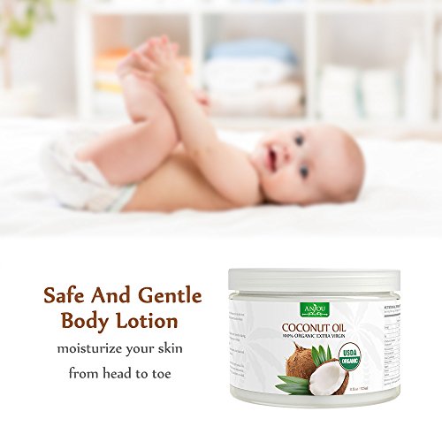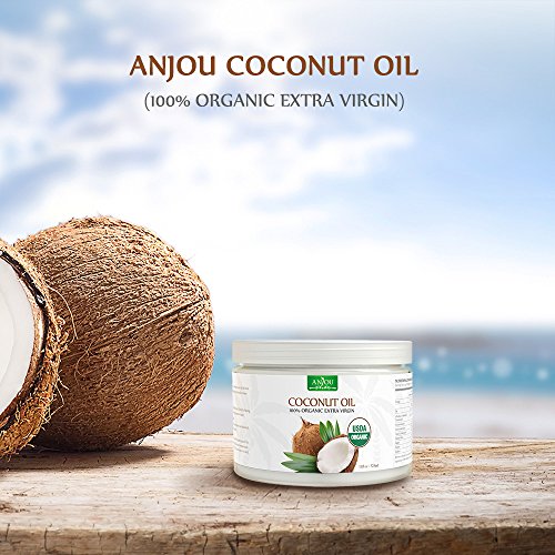 ANJOU ORGANIC COCONUT OIL, COLD PRESSED UNREFINED, EXTRA VIRGIN FOR BEAUTY, COOKING, HEALTH, DOGS, DIY LOTION, HAIR, SKIN, TURN TO LIQUID ABOVE 79 F DEGREE, SOURCE FROM SRI LANKA, 11 OZ