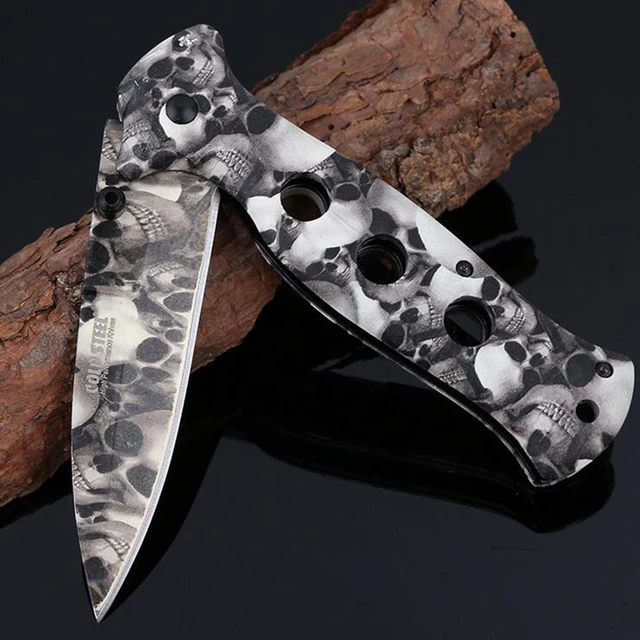 | [해외] 새로운 화이트 해골 야외 자기 방어 사냥 접는 나이프 블레이드 캠핑 생존 전술 포켓 나이프 배 나이프 멀티 도구 |