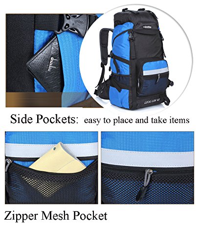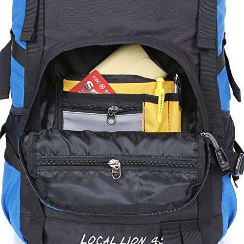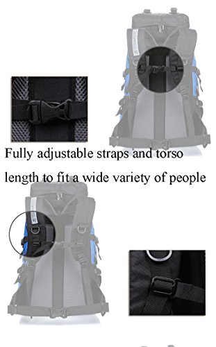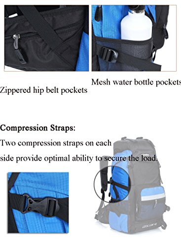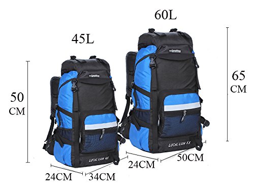 -. Feature : Features: Scientific design, reasonable structure, easy loading of items, bear comfortable relaxed, suitable for long journey. / This Backpack is made with high quality tear and water resistant material, waterproof, wearable, anti-fouling and lightweight. And with air drainage bear system, in line with ergonomic professional design for improve the comfort of the backpack. / Front structural analysis: 1.Dual zippered hip belt pockets 2.Side and Front Compression Straps: Provide optimal ability to secure the load 3.Top Compression/Sleeping Pad Straps: Helps hold Sleeping Pads 4.Dual mesh water bottle pockets 4.Top zip pockets and front zip mesh bag can put umbrellas, raincoats, cups and other small items 5. Bottom weaving hooks can hang small items / Back structural analysis: 1.Damping adjustable durable straps: Waist straps and all other straps use Oxford straps widening design, make the waist load-carrying capability more uniform 2. Dual zippered hip belt pockets 3. D-type buckle can be hanging kettle and another items, let you convenient to use 4. Air Mesh Back Panel£ºLarge air mesh back padding panels allow for airflow and comfort 5. Chest adjustment system: Can adjust the sliding buckle to adapt to different people's height / This back pack suitable for a variety environment, more versatile. The external dimensions is 50x 34x 24cm, 45L capacity. Because of the different measurement techniques, there may be 1 to 3cm error, which is a normal phenomenon.