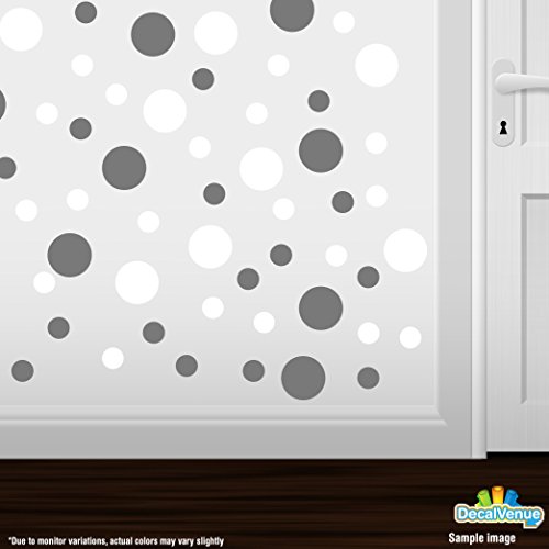 Set of 30 - White / Grey Circles Polka Dots Vinyl Wall Graphic Decals Stickers