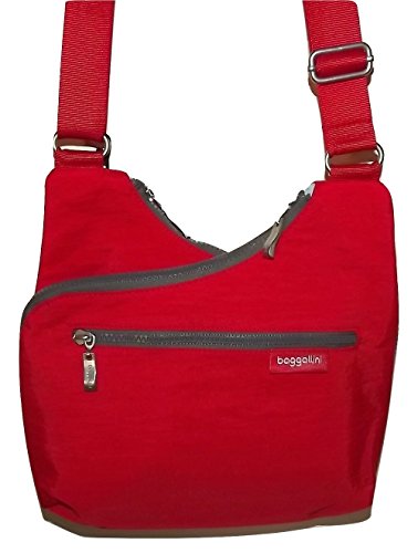 Product Description This attractive cross body bag from Baggallini is constructed from a durable, water-resistant nylon fabric. This bag features an adjustable crossbody strap, 2 top zip compartments, a center slip compartment and interior credit card slots. 0