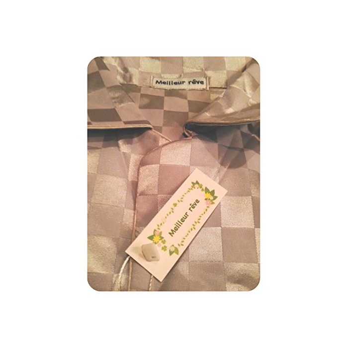 Meilleur rve Meilleur reve(메이 자 리브)남녀 촉감 매끄러움 실크 파자마 쾌적한 잠 엘레강트긴 소매 상하 세트 선택가능 사이즈