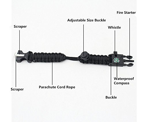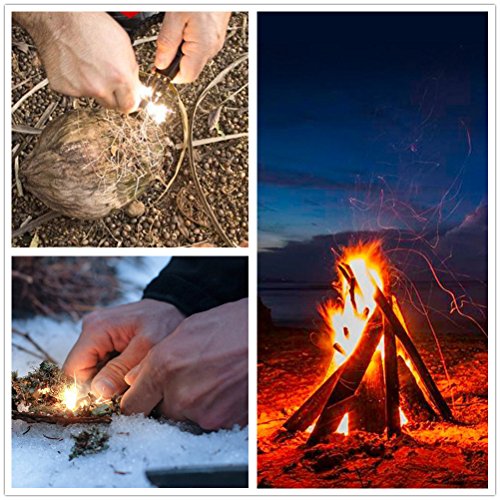 - ✔ Fire Starter and Scraper: gives you an easy solution when lighting a fire in an emergency situation, Rub the rod to the scraper then you will get sparks and fire, prepare a meal and keep wild animals away