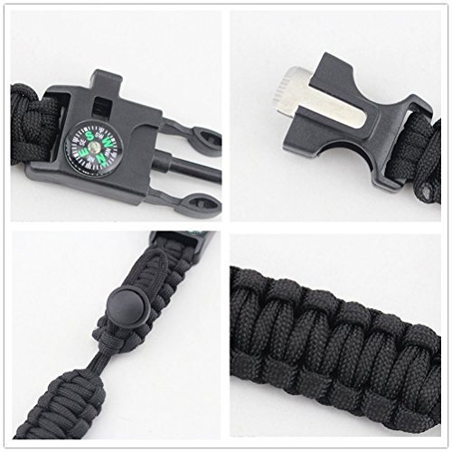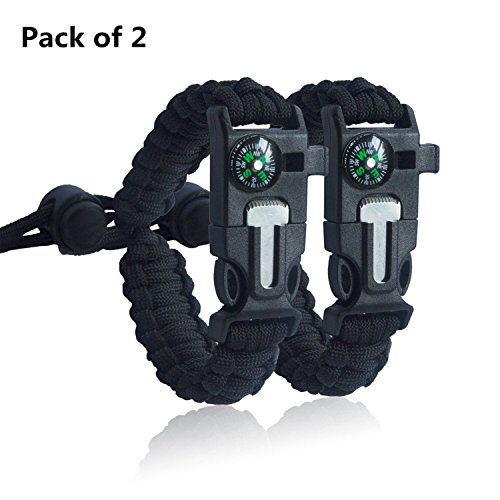 OrchidBest 2 PACK Paracord Bracelet Survival Gear Kit with Compass Fire Starter Emergency Whistle and Rescue Rope Buckle Design, A Must for Travel Hiking Camping
