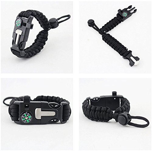 - ✔ 2 Pack of Survival Tool Set: Always be ready and prepared with this 5 in 1 survival gear kit include Compass, Fire Starter and Blade, Whistle(up to 100db loud) and Parachute Cord Rope, Emergency gear necessary for everyone, Perfect for camping, hiking, fishing, hunting, outdoor activities, and unexpected survival situations