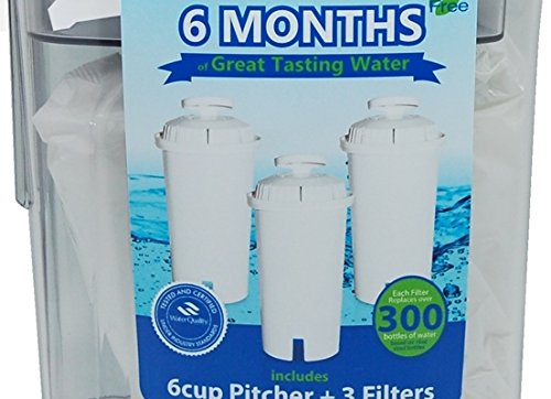 1 RED Pitcher with 3 Filters - Each Filter Replaces Up to 300 Bottles (16 Ounce) of Water...Sleek Design...GIFT QUALITY...Reduce Water Filtering Pitcher PLUS 3 Filters...Color: RED...Capacity: 6 Cup PItcher...Pitcher Measures 8.75" Tall...6 Months of Great Tasting Water...BPA Free Clear Pitcher with PURPLE LID & HANDLE...Making it Easy to Drink Healthy!Feature