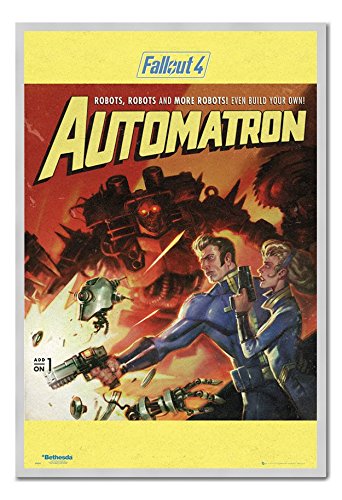 -. Title : Fallout 4 Automatron Poster Magnetic Notice Board Silver Framed - 96.5 x 66 cms (Approx 38 x 26 inches)