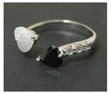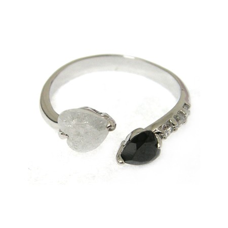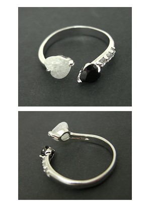 ***アイスホワイト×ブラック2カラーのハートキュービックが向き合った、シックでスタイリッシュなハートリング(指輪)★モチーフ先端が開いた作りでサイズ調整が可能です!(約7号~15号)二つのハートが愛をささやくようなデザイン!アイスホワイトハートは柔らかなイメージ、シックなブラックハート側にはキュービックがリングにキュービックをほどこされています☆*サイズ:調整可能(約7号~15号)*素材:アイスキュービック、ブラックキュービック、Brass、ホワイトゴールドメッキ*メーカー:KATENKELLY SEOUL