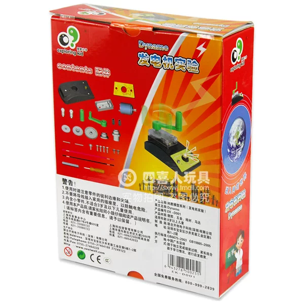 ■ strengthen their skills and thinking skills children DIY; understanding of the relationship between the solenoid. There are two magnets in the generator hand, that the two magnets in the middle field, and when rotated through the middle of a coil, the magnetic lines cutting, induction current is generated; handle the faster roll, the greater the current generated.