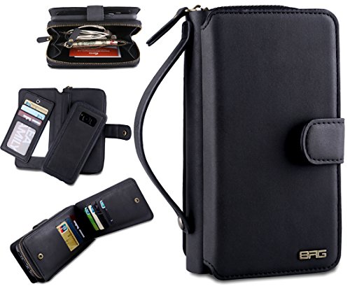 원본상품명: eloiro Samsung Galaxy s8ケ?ス、プレミアムレザ?ファスナ?付き財布携?ケ?ス取り外し可能つ折りフリップホルスタ?保護スナップボタンクラッチカバ?複?のカ?ドホルダ?&ハンドスト