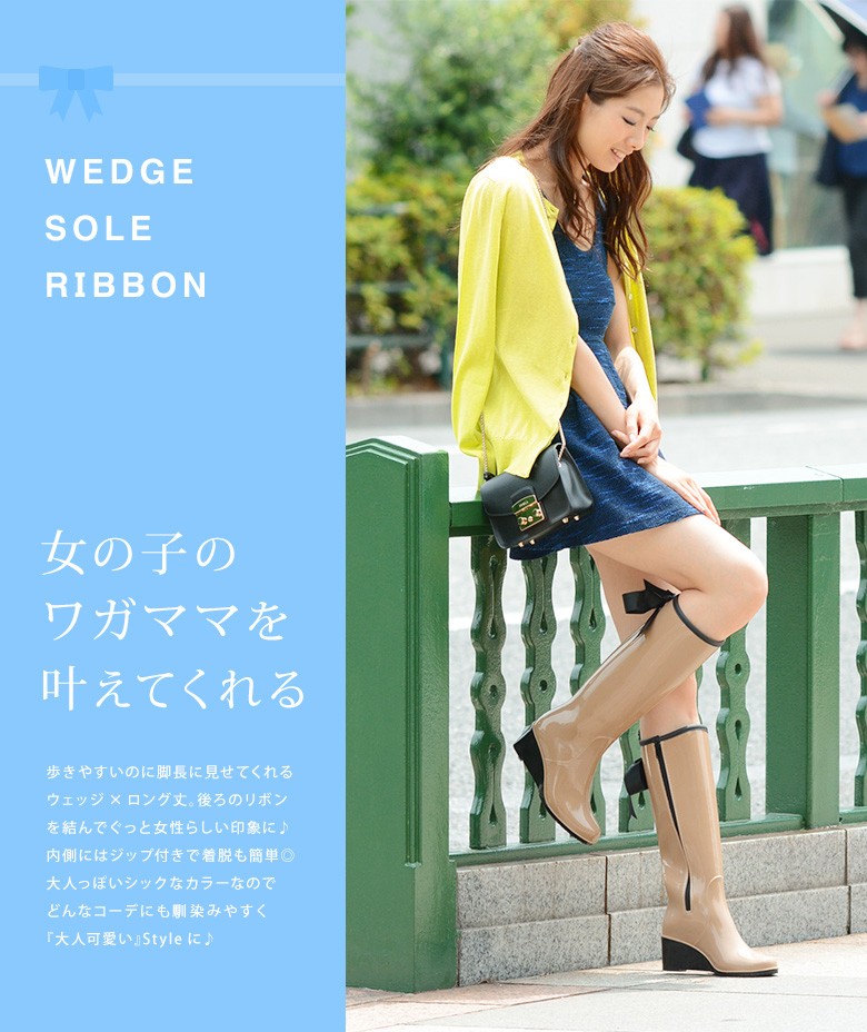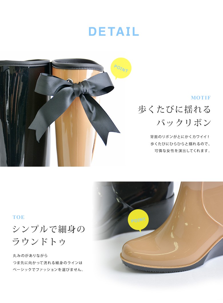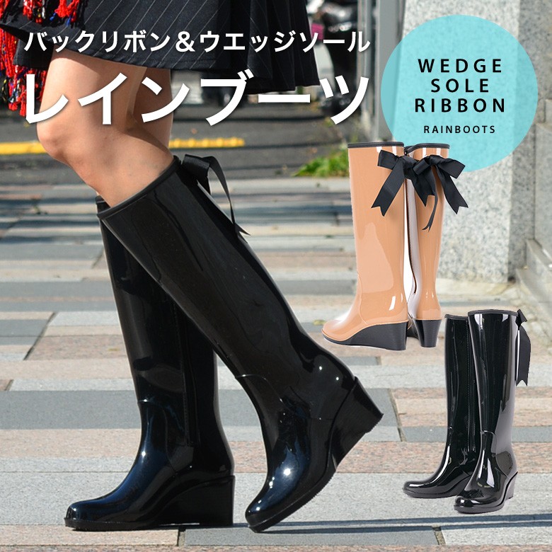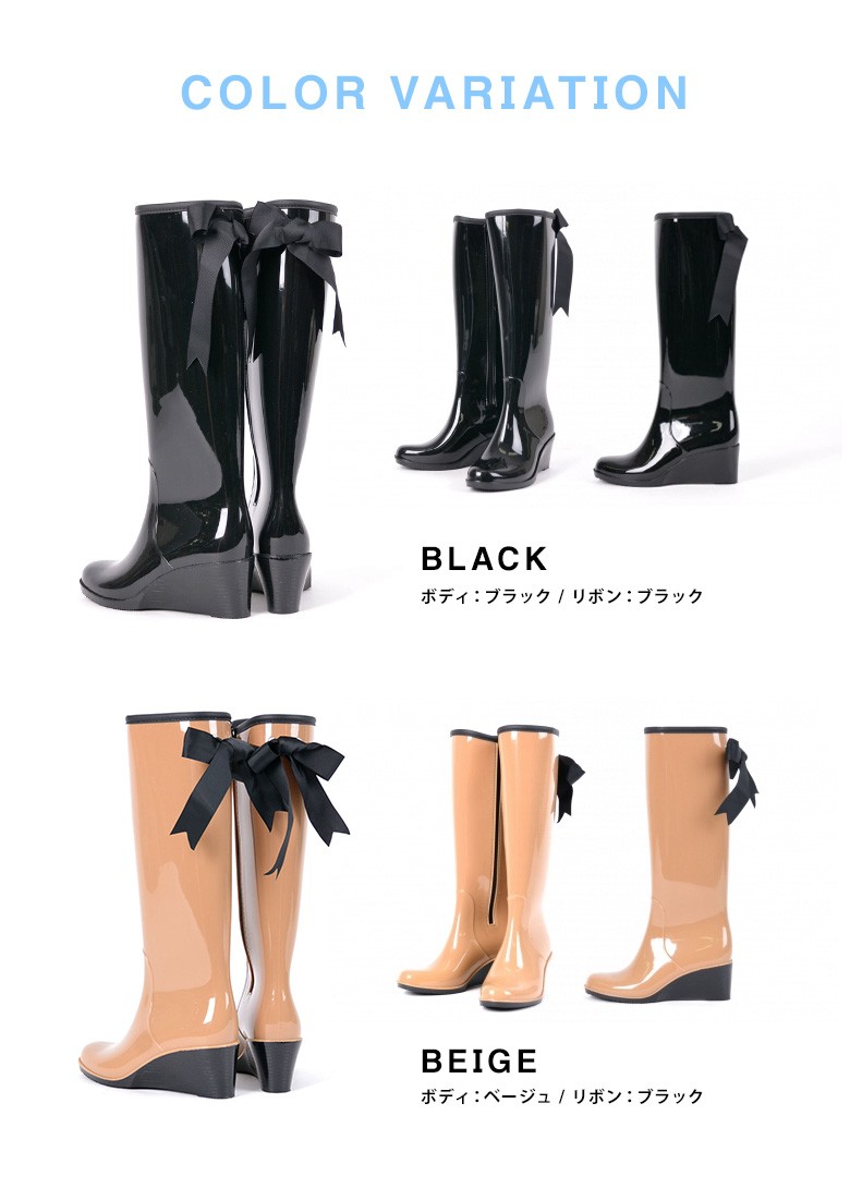 | 商品名 | ウェッジレインブーツ スノーブーツ レディース バックリボン ロング 内側ファスナー 長靴 RB1401 送料無料 | ||