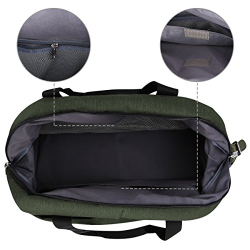 -. Feature : Material: Water repellent polyester fabric and cotton liner, soft, smooth, high impact resistance / Size: 16.5 x 12.6 x 9 inches (42 x 32 x 23 cm), Airline friendly, complies with airline hand bag restrictions so you can take it as a carry on / Great Choice for overnight bag, short journey bag, weekend travel bag, sports duffel bags, gym tote bag / Adjustable and removable shoulder strap. Adjustable nice shoulder straps (appr. 70 ~ 120 cm) / Compartments: 1*front small zipper pockets, 1*back zipper pocket, 1*inner gridding zipper pocket and 1* inner velcro pocket