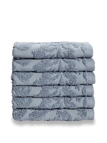 Chortex Baroque %100 Turkish Cotton Washcloths, Set of 6 (Dusky Blue)
