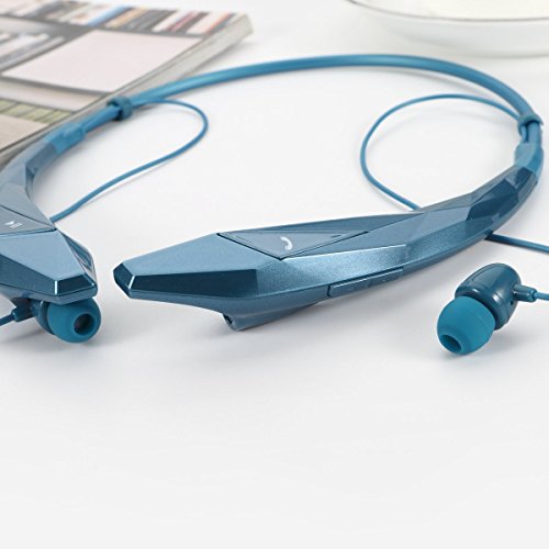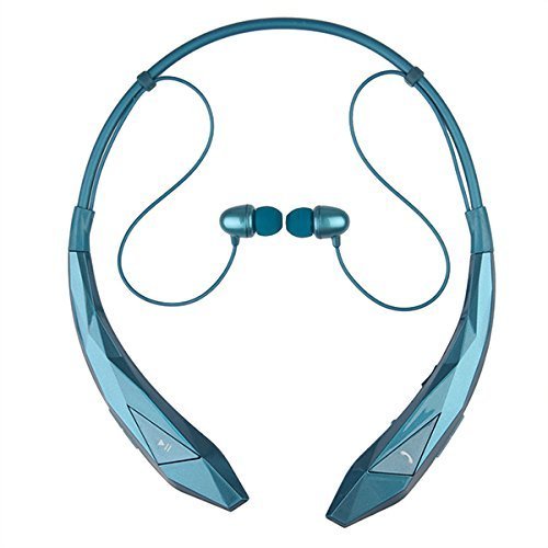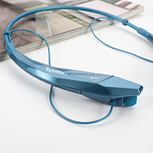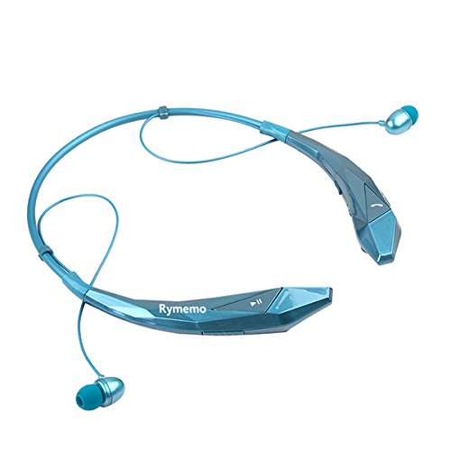 Rymemo 2015 Newest Design Diamond Surface Universal Wireless Bluetooth 4.0 Stereo Music Headset Headphone Earpiece Sports Vibration Neckband Style Earphone for Cellphone (Blue)