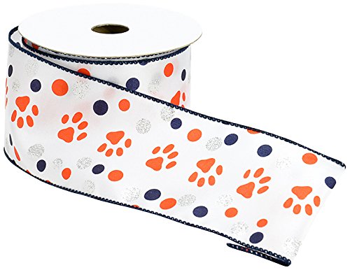 Caffco International Wired Edge Satin Ribbon, Paw Print Dot Design