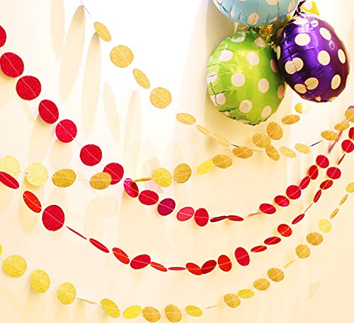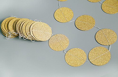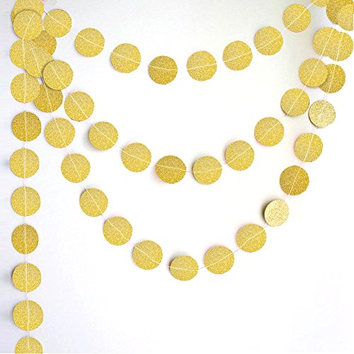 Peicees 4 Pack Gold Circle Dots Glitter Paper Garland Hanging for Wedding Birthday Party Decoration