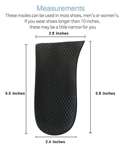 FITS MOST SHOES – These insoles can be used in most shoes, men’s or women’s. However, if you wear shoes longer than 10 inches, these may be a little narrow for you and might move around in your shoes.