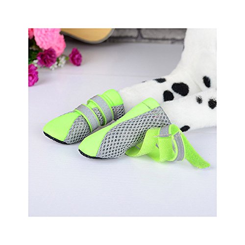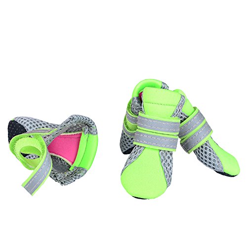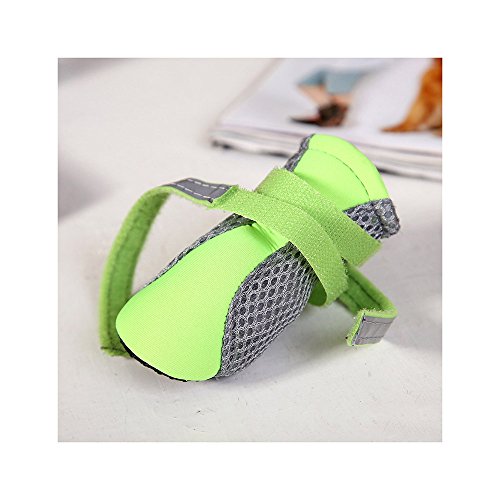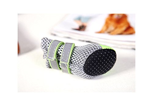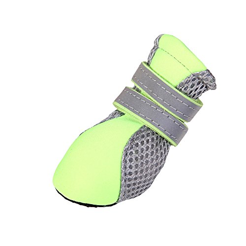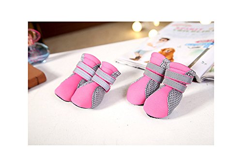 -. Feature : Upper is made of neoprene and soft double-layer breathable mesh fabric, while the flexible, nonslip and water-proof faux leather soles can well provide traction and protect paws in daily life / The soft sole is flexible and durable, performs in wet and dry, hot and cold conditions; and also protect the paw from road chemicals, lawn treatments, scratches and from nail marks, provides support and insulation, polyester mesh sides will help your pet from getting over heated / Some have Velcro straps with slides fasten the shoes and boots tightened, reflective strip great for night time walking and will help dogs to be seen day or night / Lightweight, soft and hand washable, practical for small dogs or puppies in daily walks during spring, summer, and early fall / 100% brand new and high quality.