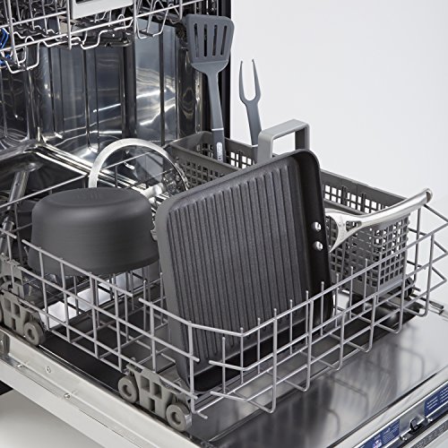 Heavy-gauge aluminum construction ensures even heating and is hard-anodized for durability. It also makes it dishwasher-safe.
