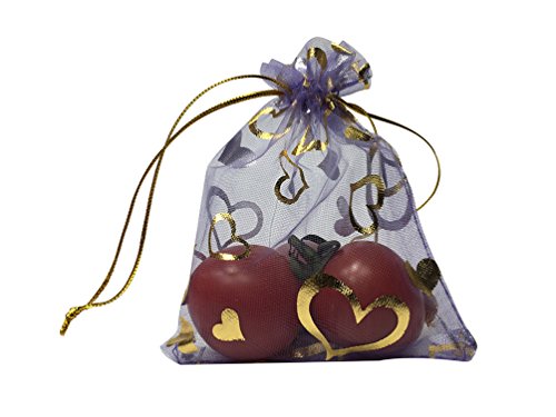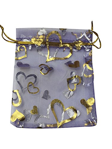 SUNGULF 100Pcs Sheer Organza Drawstring Pouches Hearts Wedding Gift Bags Purple Color 3x4 Inches