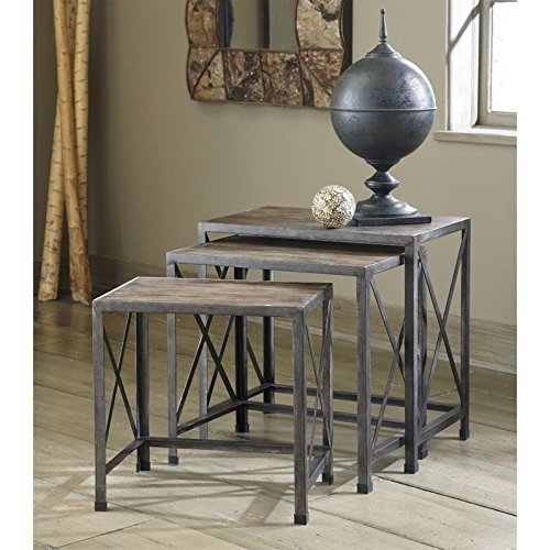 -. Title : Ashley Furniture Signature Design - Vennilux Nesting End Tables - 3 Piece Table Set - Gray Brown Finish