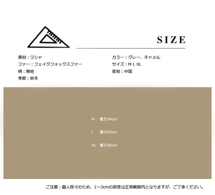 ポンチョ レディース チェスターコート レディース 九分丈 無地 ケープ 大きいサイズ ラシャコート ジャケット 通勤 2018秋冬新作 ポンチョコート レディース チェスターコート 無地 ケープ 大きめ商品詳細素材:ラシャファー:フェイクフォックスファー柄:無地季節:秋冬カラー:グレー、キャメルサイズ:M L XL産地:中国サイズ参照表M 着丈84cmL 着丈85cmXL 着丈86cmご注意:個人採寸のため、1~3cmの誤差は正常範囲内となりますが、ご了承ください。ポンチョ レディース チェスターコート レディース 九分丈 無地 ケープ 大きいサイズ ラシャコート ジャケット 通勤 2018秋冬新作 ポンチョコート レディース チェスターコート 無地 ケープ 大きめ
