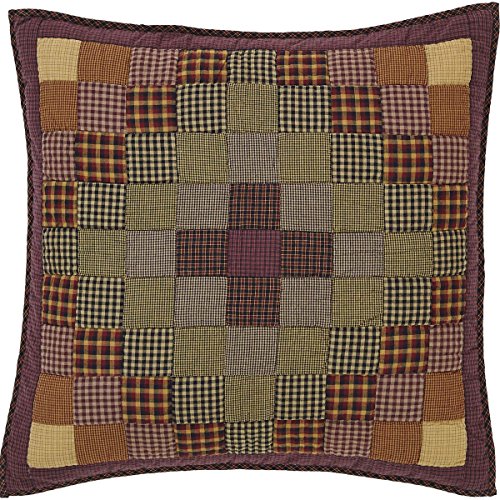 - Stitch in the ditch hand-quilting on various crimson, mustard, and black plaid fabrics
