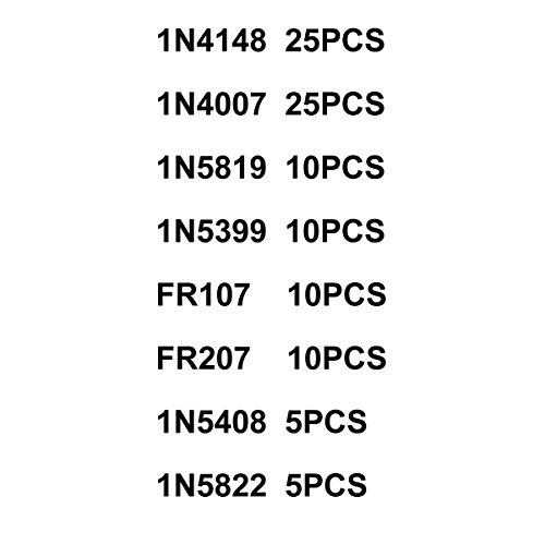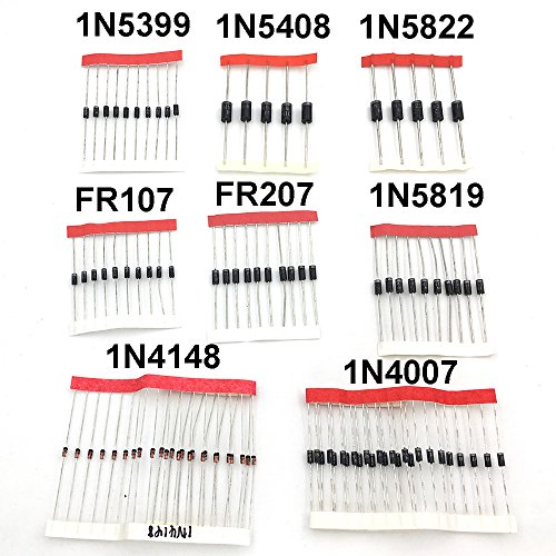 McIgIcM rectifier diode assorted kit,100pcs 1N4148 1N4007 1N5819 1N5399 1N5408 1N5822 FR107 FR207 electronic components package,diode assortment