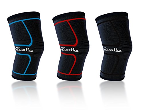 ElixirHeal - Knee Sleeve - Knee Compression - Supports: Running - Gym - Extended Work - Jogging - Sports (basketball, baseball, etc.) - Cross Fit - MMA -...