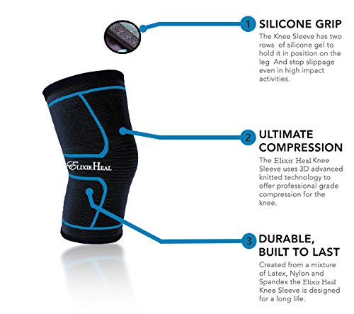 - ✅ Why ElixirHeal knee compression sleeve? Our sleeve is crafted from premium materials (medical grade latex and nylon) that offers unbeatable support and reduction of knee pain and inflammation with anti-slip ventilated design. The design was engineered for long term usage with TOP notch elastic and quality that offers compression for everyday daily use. Can you afford to risk injury because of inferior products?