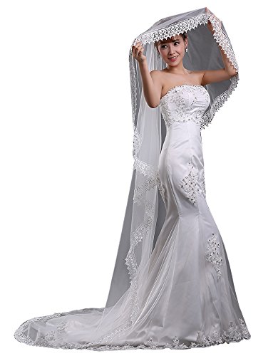 (Sarahbridal)/Accessories/Scarves/DIRECT FROM USA/Sarahbridal Women's 3m Length Ivory Wedding Veils One Layer Lace Applique Edge Bridal Veils Wed...
