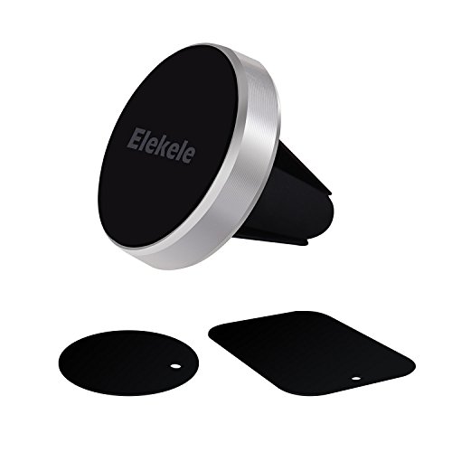 -. Feature : 【Strong Force of Attraction】Elekele Universal magnetic holder produces an intensive force of attraction, and the reasonable magnetic structure has solved the problem of magnetic leakage, don't worry about the affect for the phone signal. Suitable for any smartphone, including Android, Apple, Blackberry and Microsoft devices. / 【Sturdy Base】The high quality rubber construction of the base of the mount is unique and very functional as well. It guarantees that the base of the mount will solidly hold the magnetic head of the mount, to help keep your smartphone in place, regardless of road vibrations or impacts. / 【Free to Adjust】 Rotate your smartphone and swivel your display as you please. 360 degrees free to adjust any direction you want, and your phone won't slide down, no matter how much swiveling or rotation you do. This guarantees that your smartphone will always remain in your preferred position. / 【Unique Design】 Elekele Car Phone Holder uses alloy as outer ring, with P.R.Ism-shaped silicone clip design, mounting more tight and not damage the car. Protective silicone face provides better protection of mobile phones. And it doesn't need glue, installed in the outlet, without leaving traces in your car. / 【Easy to Use】 This Air vent universal smartphone magnetic car mount holder is easier to use than any other magnetic car mount holder due to its simple and complementary design. It has a sturdy rubber base and a powerful magnetic head for holding smartphones.