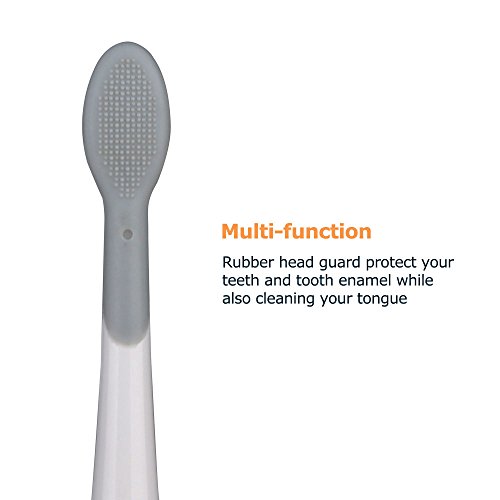 1. Multi-function rubber brush head: Rubber head guard cushions your teeth and tooth enamel while also cleaning your tongue