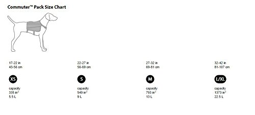 Studio : Ruffwear Publisher : Ruffwear Binding : Misc. Product Description The Ruffwear Commuter is a classic everyday rucksack with a clean, traditional design that incorporates Ruffwear performance features. It includes dogs in day-to-day hunting and gathering delights, empowering them to efficiently carry provisions for the whole pack. The Commuter is at home in urban environments as well as on the trail, from a trip to the farmers' market to all-day outings. An integrated harness that's comfortable and easy to adjust provides pack stability and overall performance. Heathered polyester fabric presents a heritage style that excels in the outdoors, while leather accents, aluminum V-ring, webbing tow loop, and side-release buckles modernize a classic look. The Commuter Pack is available in 4 sizes. Select the correct size based on your dog's girth (measurement around the widest part of the rib cage). X-Small: 17-22 inches (43-56 cm); Small: 22-27 inches (56-69 cm); Medium: 27-32 inches (69-81 cm); Large/X-Large: 32-42 inches (81-107 cm). Capacity and Weight: X-Small has a capacity of 335 cubed inches (5.5 L) capacity and weighs 0.85 lb (0.39 kg); Small has a capacity of 549 cubed inches (9 L) capacity and weighs 1.10 lb (0.5 kg); Medium has a capacity of 793 cubed inches (13 L) capacity and weighs 1.30 lb (0.59 kg); Large/X-Large has a capacity of 1373 cubed inches (22.5 L) capacity and weighs 1.65 lb (0.75 kg). Washing instructions: Secure the fasteners; Hand wash with mild detergent; Hang dry. 0