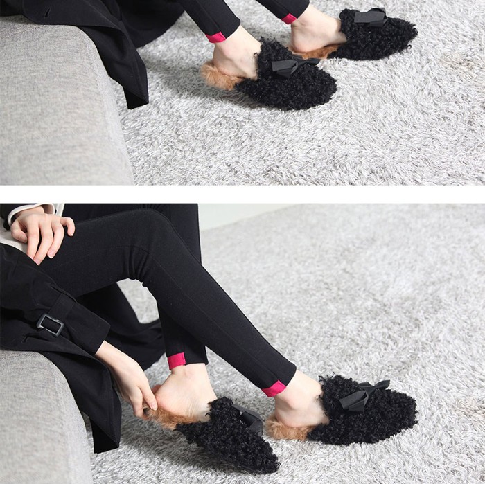 商品名:サボサンダル レディース 起毛 フェイクファー 2017 秋冬 ファッション 靴 婦人靴