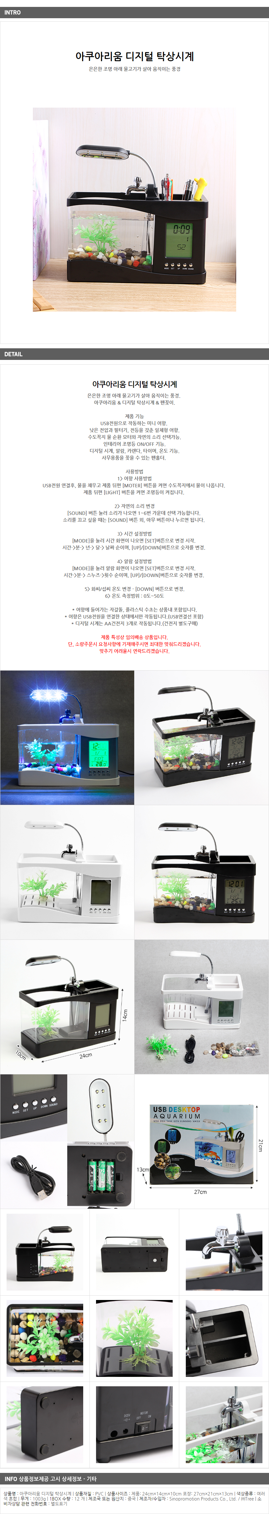 Fountain digital tabletop clock pen case aquarium