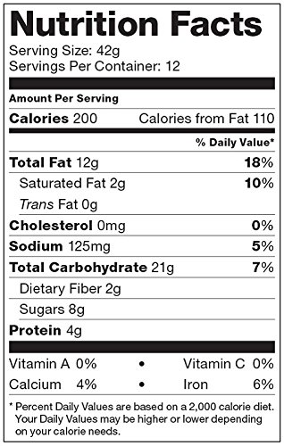 -. Feature : Sodium: 125 mg / Total Carbohydrates: 21 g / Calories: 200 / Saturated Fat: 2 g / Servings Per Container: 12
