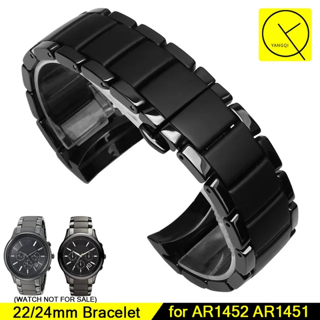 | [해외] 곡선 엔드 세라믹 손목 시계 스틸 아르마니 22 미리메터 AR1452 24 미리메터 AR1451 남자 시계 팔찌 나비 버클 스트랩 액세서리 + 도구 |