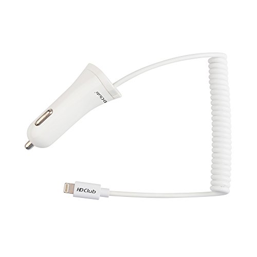 Car Charger With Integrated Lightning Cable 3 feet White, Apple Certified
