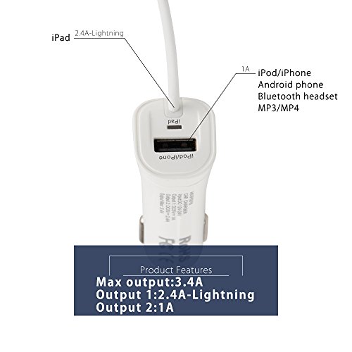 *The provided cable is compatible with: iPhone (5/5S/5C/6/6 Plus/6S/6S Plus), iPod Touch (5th–6th generations), iPod Nano (7th generation), iPad mini (all generations), and iPad (4/Air/Air 2/Pro). Car charger is compatible with any standard-USB connector.