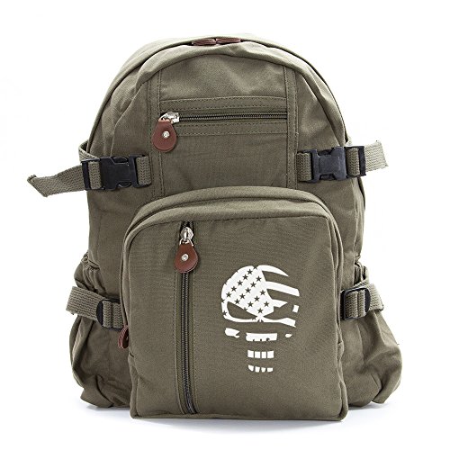 -. Title : The Punisher Skull American Flag Army Canvas Mini Backpack Bags