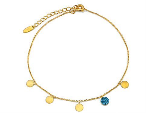 -. Title : Silver Gold Plated Anklet 9"+ 1.5" Chain with Circles Hanging Nano Turquoise Cz