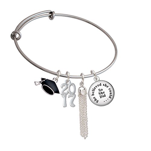 -. Binding : Jewelry -. Brand : Delight Jewelry -. Color : white -. Department : womens -. Feature : Silver Tone Domed She Believed She Could So She Did Graduation 2017 Tassel Charm Bangle. / Silver Tone Domed She Believed She Could So She Did is approximately 0.9 x 0.7 x 0.2 inches (HxWxD) including loop. High quality P.R.Inted paper sealed under a glass dome in a metal frame. Inspirational quote makes a wonderful gift for graduations, and acknowledging accomplishments. / Expandable Bangle Bracelet inside circumference is approx: 2.50 to 2.70 Inches. / Graduation Hat Charm is Approx. 0.52 x 0.7 x 0.10 inches (HxWxD) including loop. / Chain Tassel is approx. 1.70 x 0.30 x 0.30 (HxWxD). Makes a great graduation gift! -. Label : Delight and Co. -. Manufacturer : Delight and Co. -. Model : BR-C6165-C1424-C5259-F2395-F2084-FBA -. MPN : BR-C6165-C1424-C5259-F2395-F2084-FBA -. PartNumber : BR-C6165-C1424-C5259-F2395-F2084-FBA -. ProductGroup : Jewelry -. ProductTypeName : FASHIONNECKLACEBRACELETANKLET -. Publisher : Delight and Co. -. Studio : Delight and Co. -. Title : Domed She Believed She Could So She Did Graduation 2017 Tassel Charm Bangle
