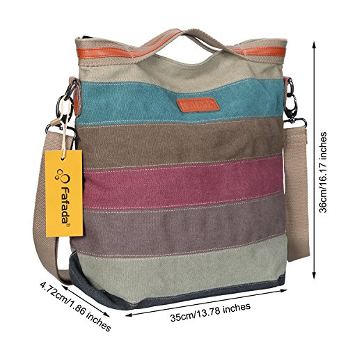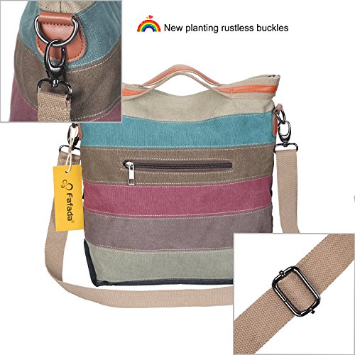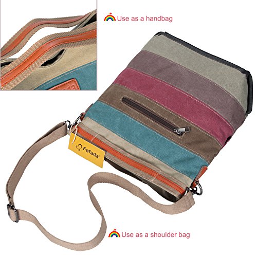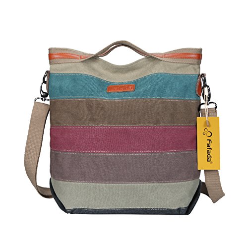Fafada Damen Madchen Canvas Leder Shopper Handtasche Mehrfarbige Regenbogen Alltagstasche Schultertasche Umhangetasche
