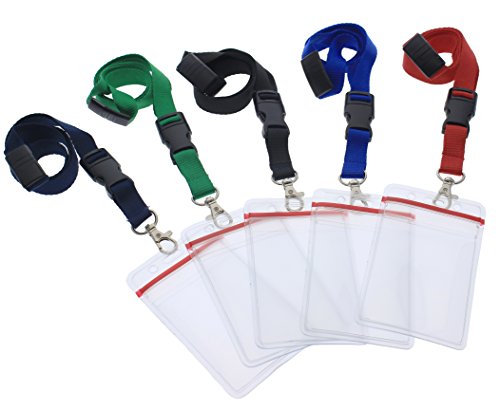 5 Pack Premium Lanyards with Detachable Resealable ID Badge Holder by Specialist ID (Assorted Colors)