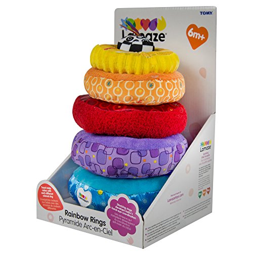Pile on the fun with the Lamaze Rainbow Stacking Rings Developmental Toy. With interesting textures, patterns and sounds, these colorful stacking rings are perfect for helping baby develop dexterity and hand-eye coordination. Multi-textured rings invite baby to explore, stimulating tactile senses. Best of all, the easy-to-grasp rings make stacking easy and fun. Lamaze Rainbow Stacking Rings includes four multi-textured crinkly rings that stack on the pegged base.Feature