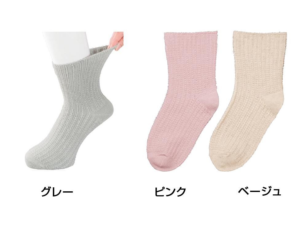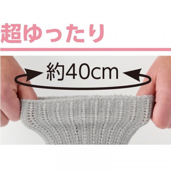 fk094igrjs足首が約40cm広がる超ゆったりタイプなので、とてもラクなはき心地です サイズ 個装サイズ:2.8×29.2×25.4cm 重量 個装重量:120g 素材・材質 レーヨン・ポリエステル・シルク・ポリウレタン 仕様 洗濯機OK 生産国 日本 ゆったりしたつくりで、締めつけ感がありません 足首が約40cm広がる超ゆったりタイプなので、とてもラクなはき心地です